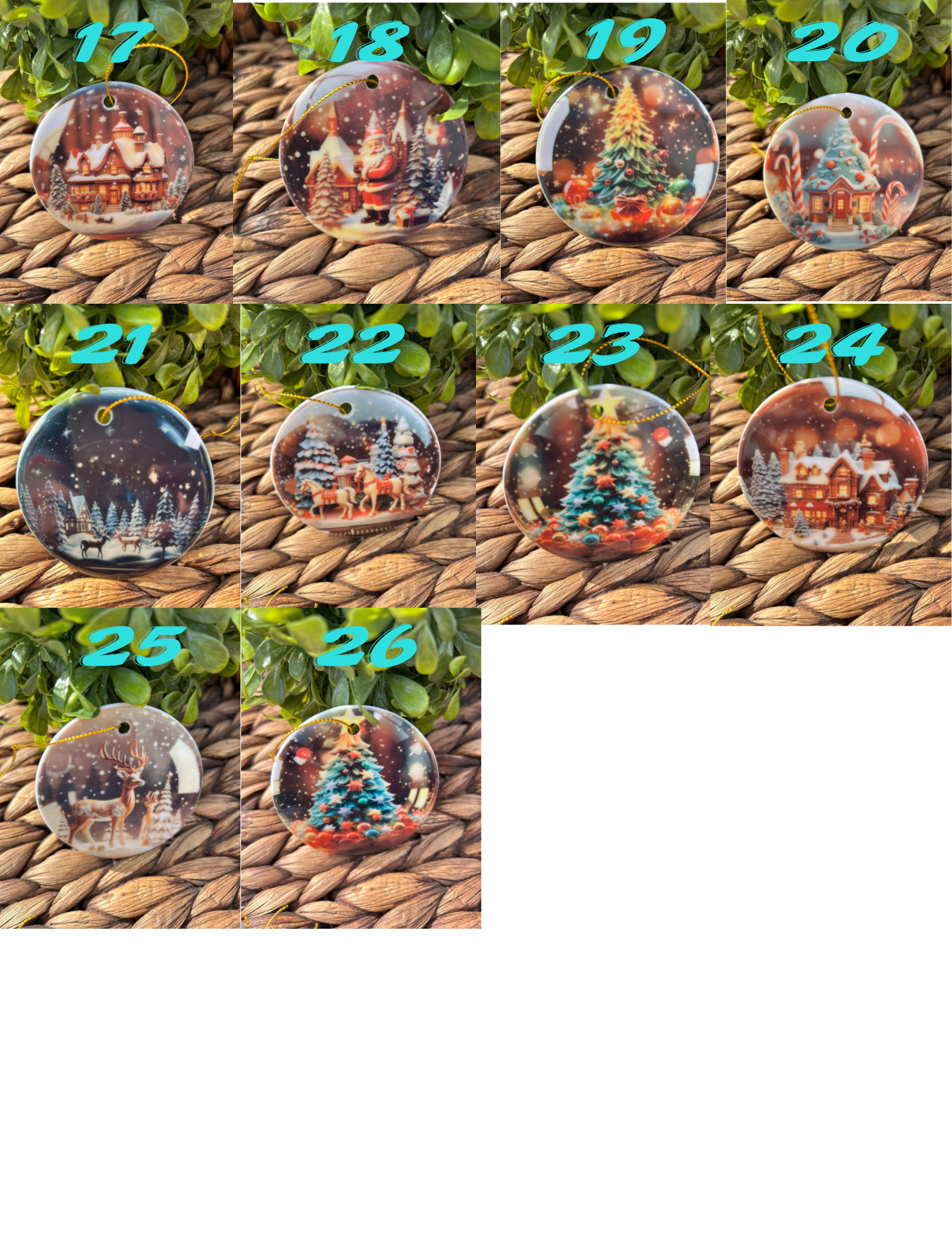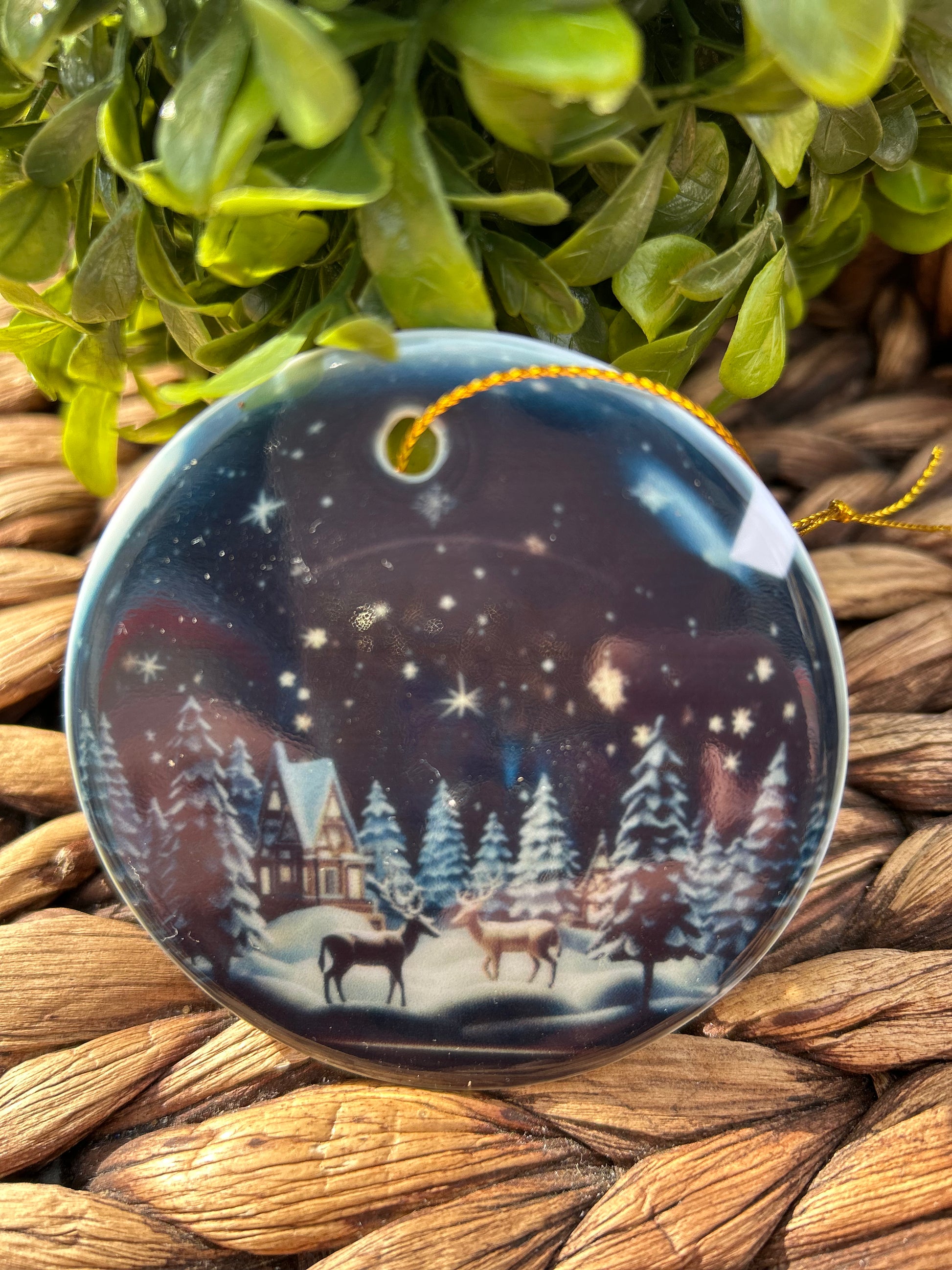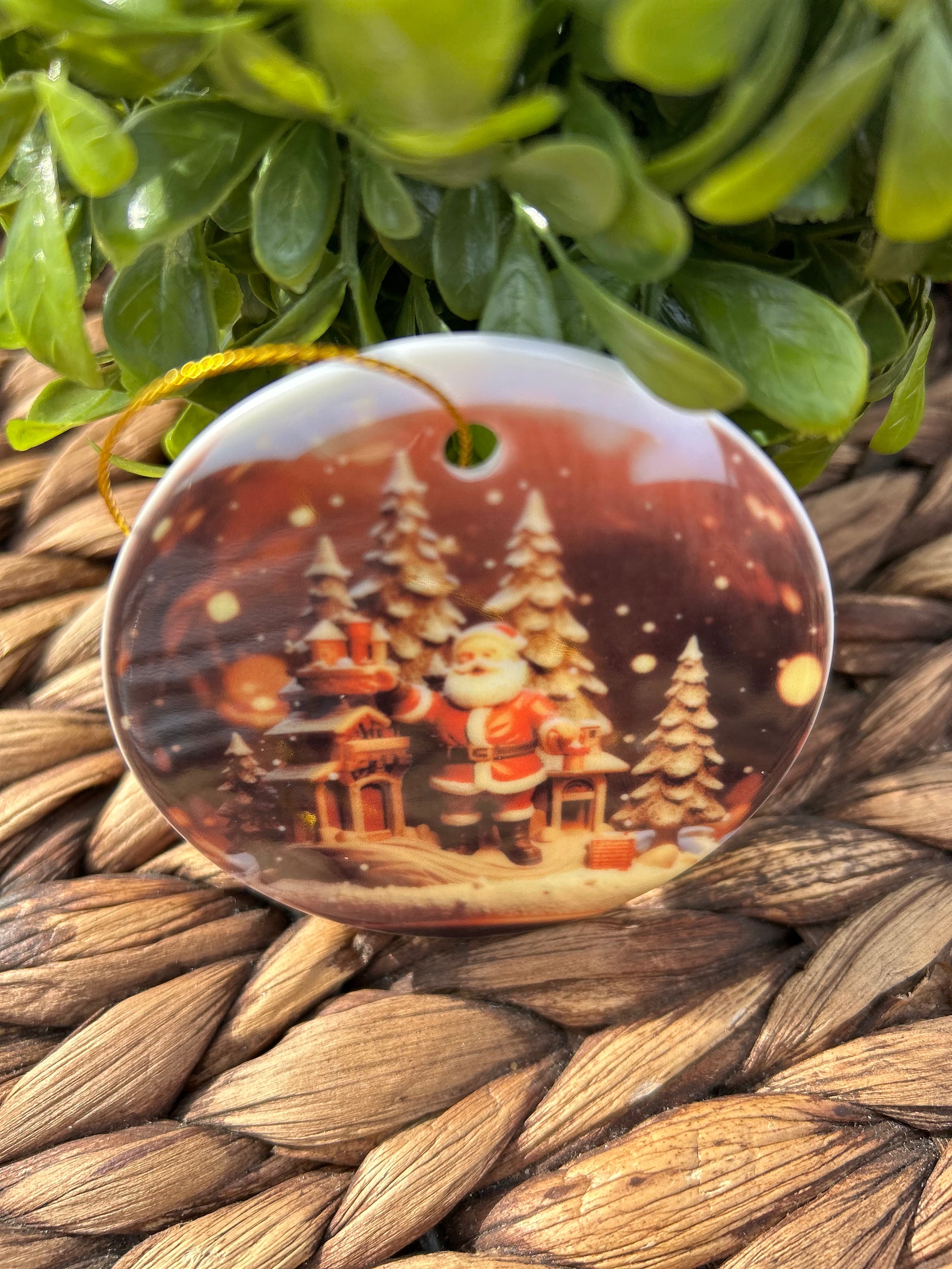 2.75" acrylic ornament made with sublimation with.gold ribbon. Keep out of direct sun, extreme temperatures and do not place in mouth.