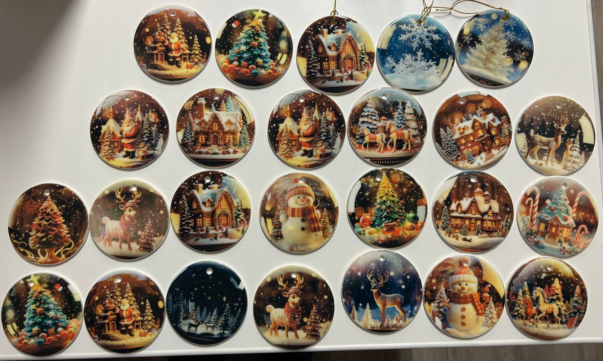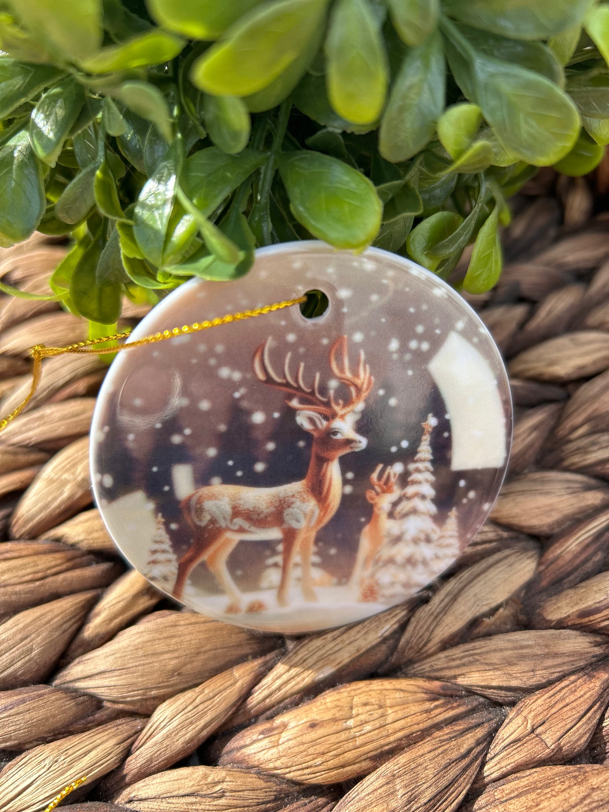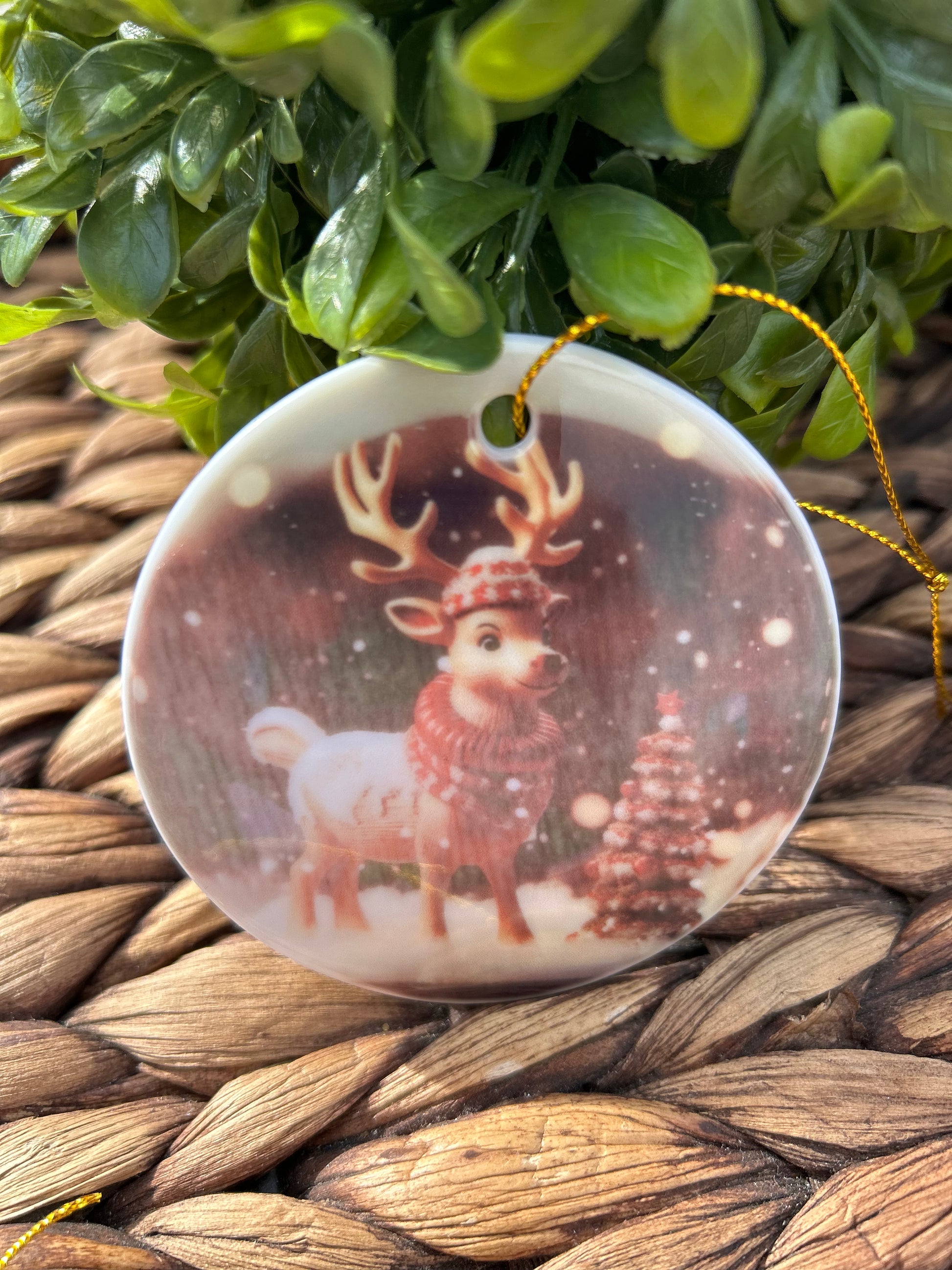 2.75" acrylic ornament made with sublimation with.gold ribbon. Keep out of direct sun, extreme temperatures and do not place in mouth.